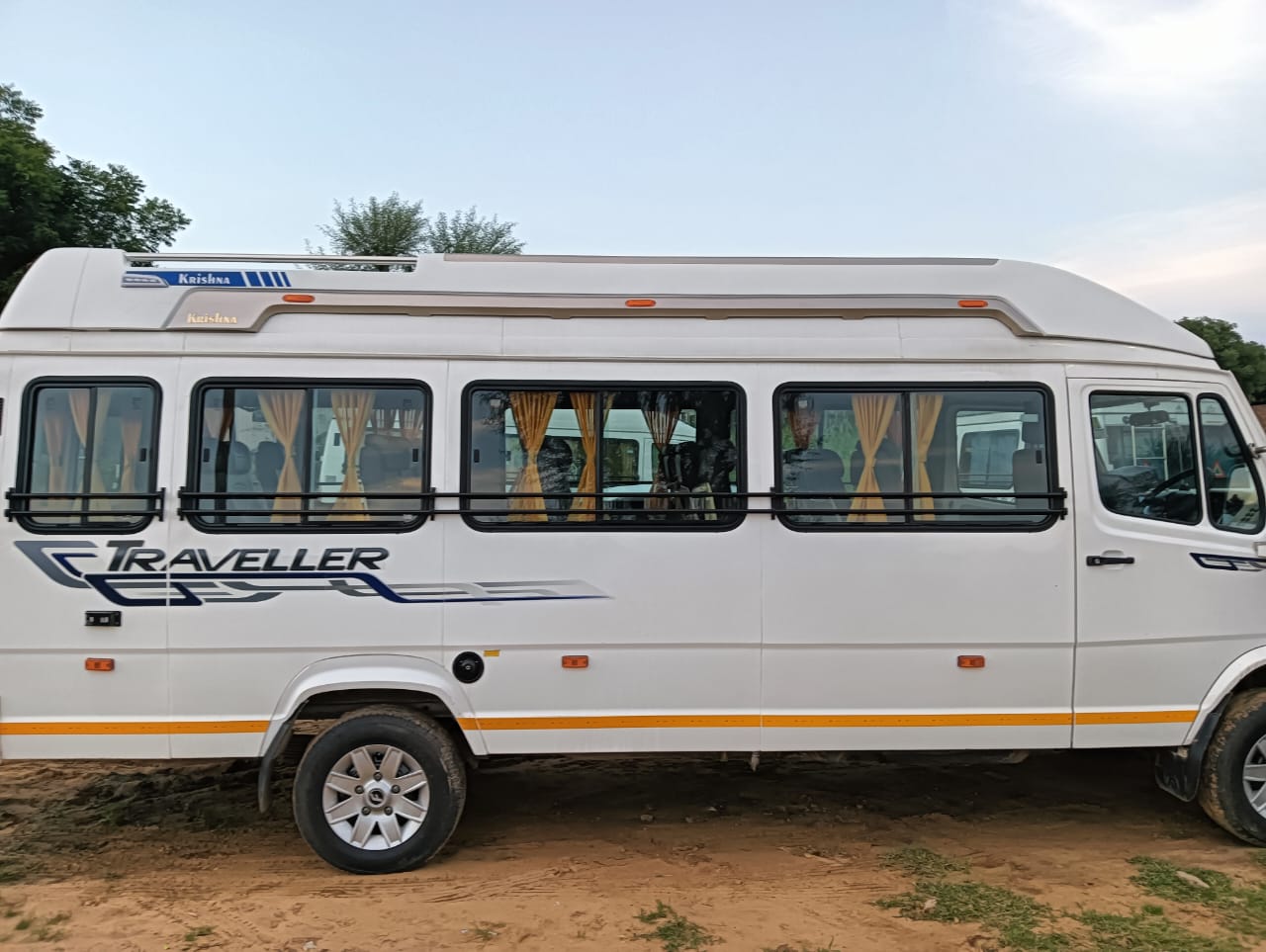 Our 17 Seater Tempo Traveller is ideal for large group travel, offering spacious seating and a comfortable journey. Perfect for family tours, weddings, corporate trips, and long-distance travel.